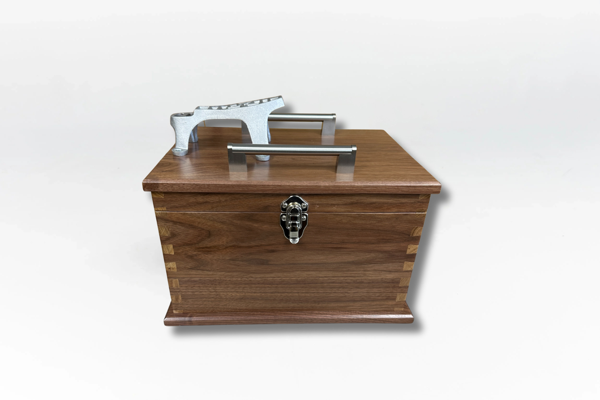 The metal footrests are installed primarily for looks and not intended to be used for carrying. To avoid potential personal injury or damage to the shine box, please use two hands when handling; do not hold using the footrest. Even though, with thousands of boxes sold, we have never had an issue of a foot rest coming off, we do recommend using two hands to carry the box.